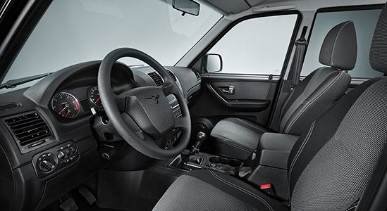 Пятиместный салон UAZ Patriot уютный и вместительный, с множеством удобств, облегчающих процесс езды. В их числе: кресло водителя с регулировкой по высоте, вещевой ящик с подсветкой, прикуриватель, современная приборная панель с розеткой на 12 Вольт, система кондиционирования воздуха и многое другое. Сидения с функцией обогрева не дадут замерзнуть зимой, а мультимедийный комплекс с AUX- и USB-разъемом развеет скуку в дороге и подарит море положительных эмоций!
